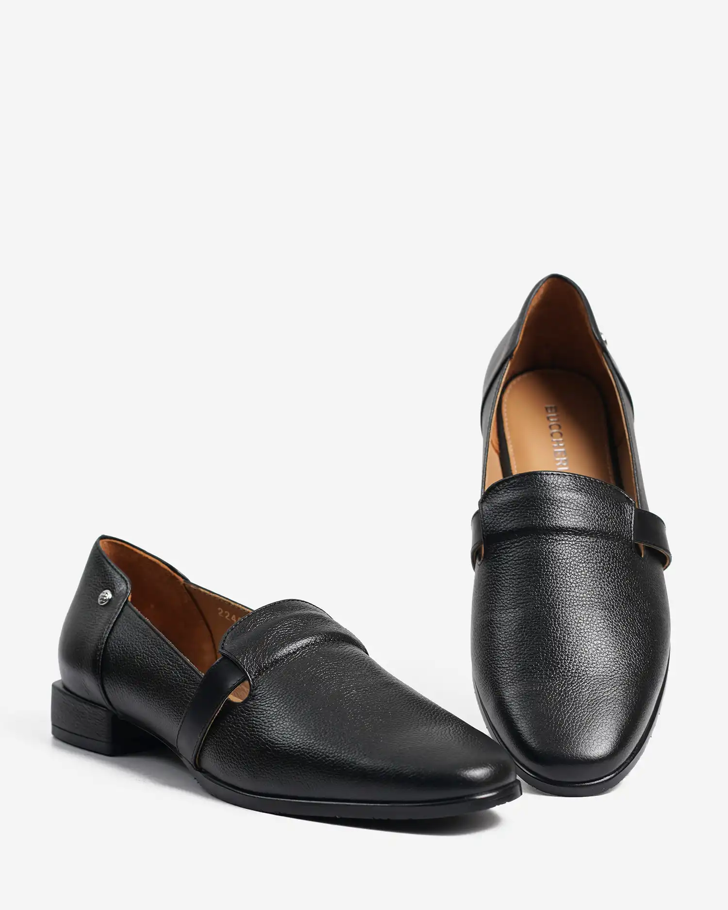 Claurin is a modern low-heeled pump crafted from smooth cow leather, featuring a clean, structured silhouette and a sleek strap accent for added character. Designed for lasting comfort and understated elegance, it complements your look with effortless ease.