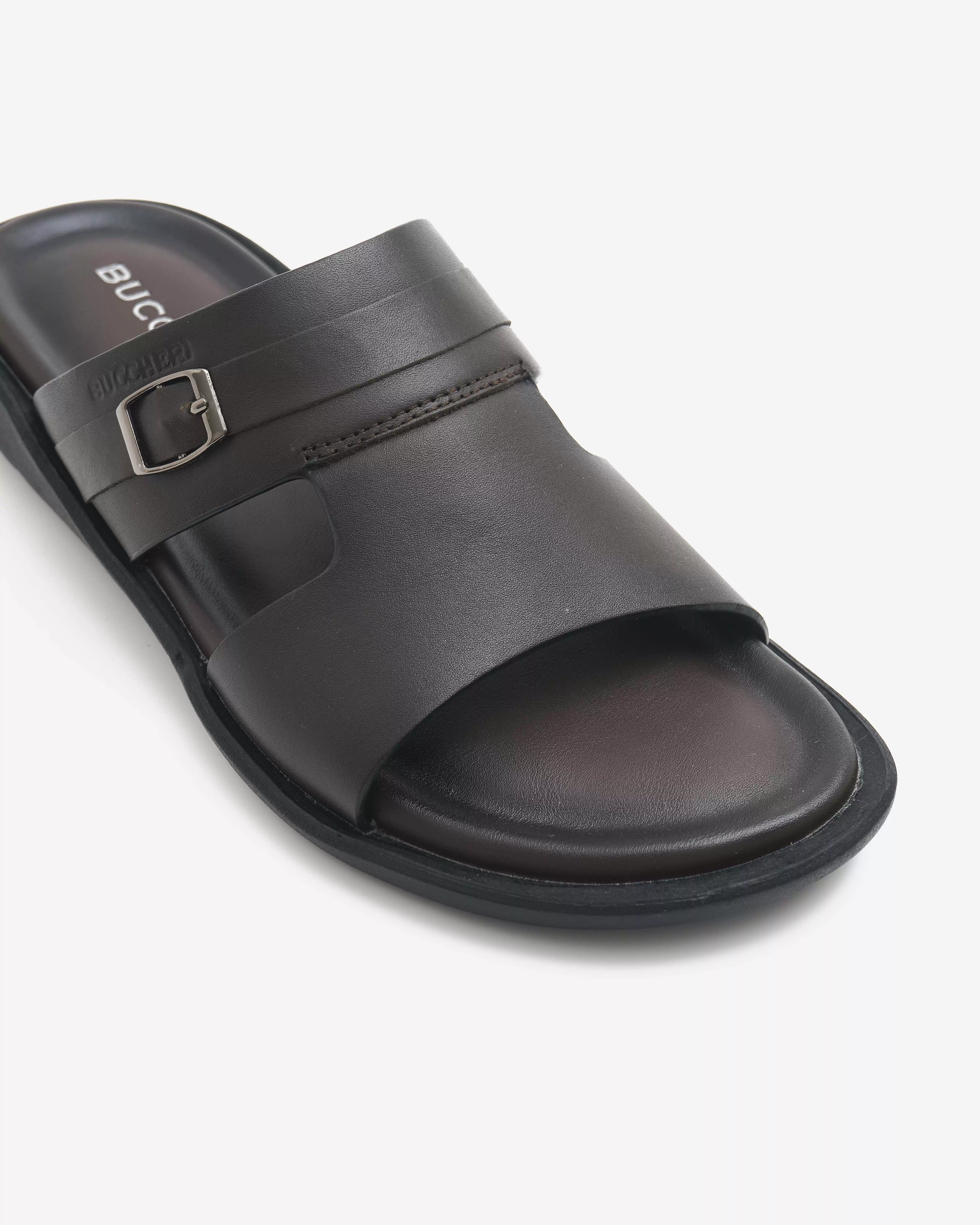 BUCCHERI presents Tercio, the ultimate sandal for the modern man who refuses to compromise on comfort and style. Crafted with the finest smooth cow leather, Tercio offers a sleek, sophisticated look. The entire sandal features innovative plasticizer technology, from the lining to the insole, ensuring unmatched flexibility and softness. Paired with a thermoplastic outsole designed for superior comfort and shock absorption, Tercio is not just a sandal—it's a promise of effortless elegance and enduring comfort.